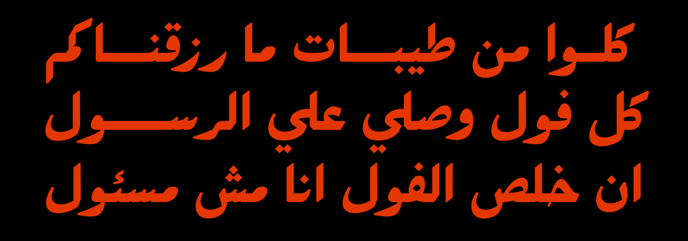 Felfel is an Arabic typeface inspired by the rich history of the Arabic Ruq’ah, one of the most widely used Arabic calligraphy styles, but with a modern pinch. It’s available in Bold but the rest of the family is on the way with different weights and effects influenced by the visual identity of Egyptian streets.